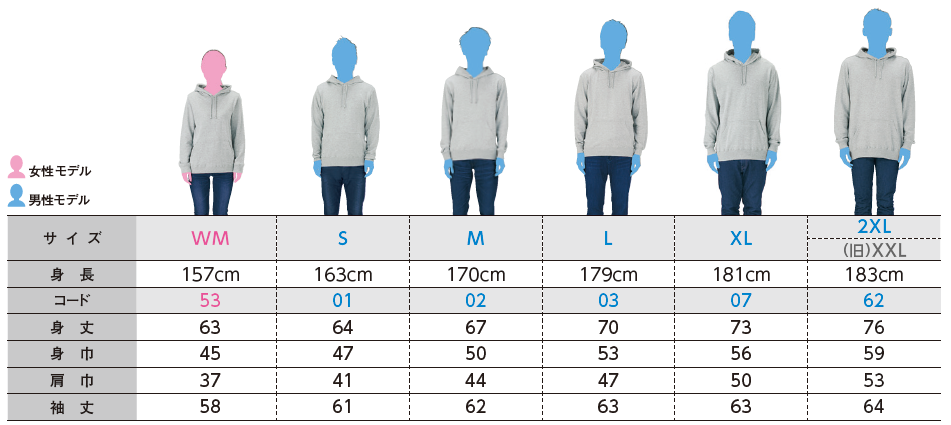 N-Aboショップのパーカーページです。素材・商品サイズは以下となっております。お選びの際の目安にお使いください。