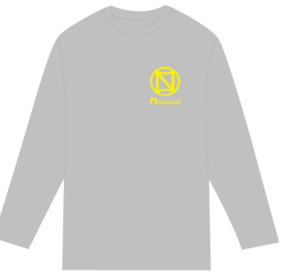 小さめのN-Aboロゴが左胸にプリントされたロンTです。グレイ地にイエローのロゴを配置したバリエーションになります。