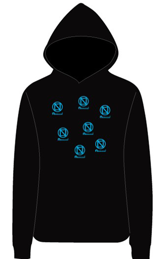7個のN-Aboロゴがセンターにプリントされたパーカーです。ブラック地にブルーのロゴを配置したバリエーションになります。