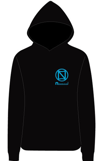 N-Aboロゴが左側にプリントされたパーカーです。ブラック地にブルーのロゴを配置したバリエーションになります。