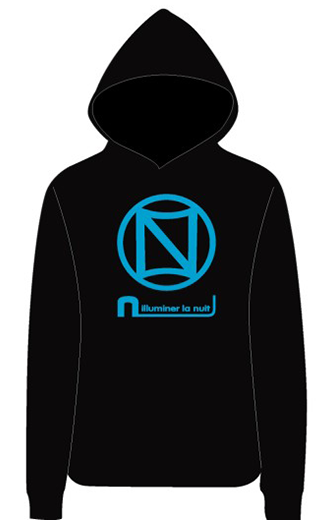 大き目のN-Aboロゴがセンターにプリントされたパーカーです。ブラック地にブルーのロゴを配置したバリエーションになります。