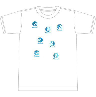 小さめのN-Aboロゴが7個プリントされたTシャツです。白地にライトブルーのロゴを配置したバリエーションになります。