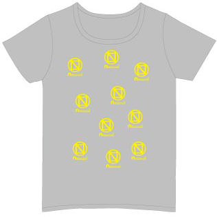 小さめのN-Aboロゴが10個プリントされたTシャツです。グレー地にイエローのロゴを配置したバリエーションになります。
